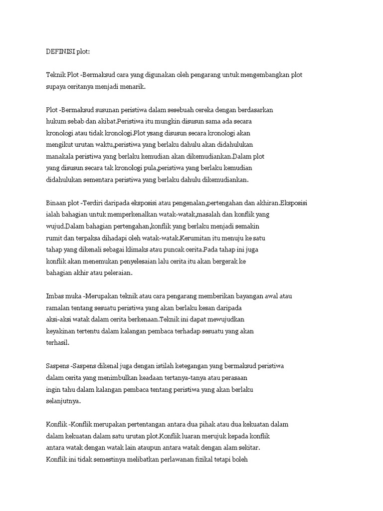 Berikut beberapa komponen dasar untuk menyusun cerpen. Plot menyertakan setiap peristiwa yang terjadi di seluruh teks. Cerpen harus ditulis dengan padat jelas singkat dan tidak bertele-tele.